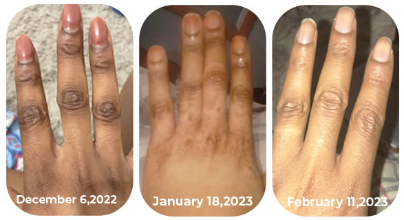 "I've been using this Acanthosis Nigricans Treatment Oil on my discolored hand for weeks. This is just what I needed. While the oil does take some time to disappear into the skin, all you have to do is keep rubbing in a circular motion. It will fully absorbed by the ski. It's very moisturzing and hydrates those dry patches. After using this for a few weeks, my hands are lighter." - Lani Hall