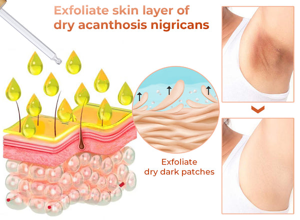 Dark skin can be exfoliated with GFOUK Acanthosis Nigricans Therapy Oil. By exfoliating the top layer of dead skin cells that may be causing a dull or uneven skin tone,Ā exfoliation can assist to lighten dark skin. By releasing the connections that hold dead skin cells together,Ā this therapy oil helps remove them from the skin's surface with ease.Ā The affected skin in Acanthosis Nigricans can be itchy, irritated, or inflamed.Ā Moisturizing can help to soothe these symptoms by providing a protective barrier over the skin and reducing friction.Ā
