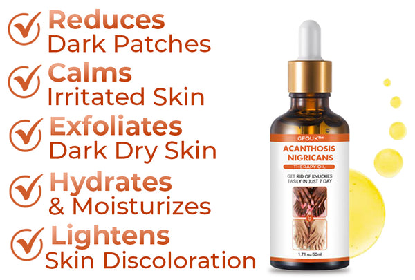 GFOUK Acanthosis Nigricans Therapy OilĀ is a specialized product designed to help improve the appearance of dark and thickened skin associated with Acanthosis Nigricans.Ā Here are some of the features that make it a special and effective product: