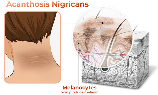 Acanthosis Nigricans is typicallyĀ caused by insulin resistance, which is a condition in which theĀ body's cells do not respond well to the hormone insulin.Ā This can lead to high levels of insulin in the bloodstream, which can stimulate the growth of skin cells and cause the characteristic dark, thickened patches of skin.